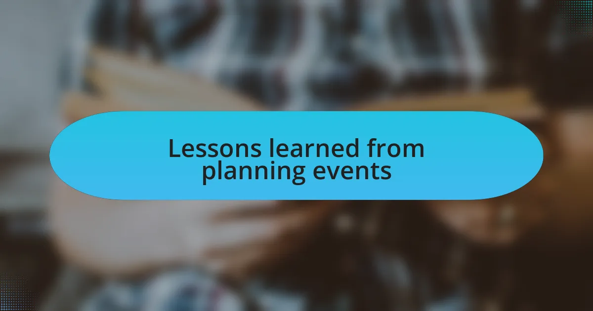 One lesson that resonates deeply with me is the value of feedback. After hosting a networking event, I decided to survey attendees for their thoughts. The responses were eye-opening. Many participants suggested improvements I hadn’t even considered, like enhancing the mingling opportunities. I learned that listening to your audience can not only refine future events but also create a sense of community and ownership among attendees. How often do you seek out feedback after an event?